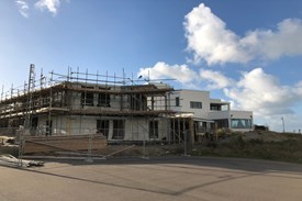 Gestaag wordt het gevelmetselwerk van het appartementen complex opgetrokken. 23 januari 2023...
