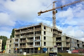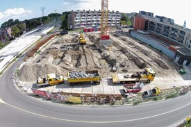 De werkzaamheden voor de bouw van het nieuwe appartementencomplex liggen op dit moment stil vanwege...