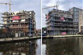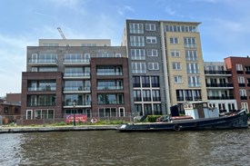 Het appartementencomplex Utrechtse Jaagpad is uit de steigers. Binnen is men bezig met de afbouw qua...