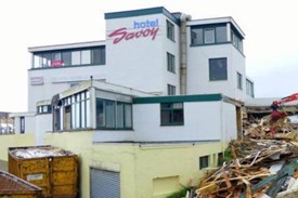 De sloop van het voormalige Hotel Savoy aan de Boulevard in Katwijk vordert gestaag. Aan de buitenka...