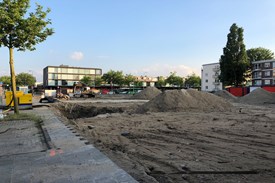 De voorbereidingen voor de nieuwbouw van Verslavingszorg De Brug aan de Schaepmanstraat 1 in Katwijk...